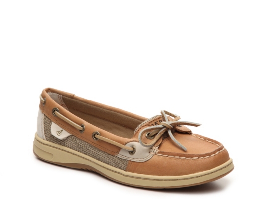 The Sperry Top-Sider Angelfish boat shoes have all the classic quality and details of the preppy chic favorite with the updated appeal of new finishes and colors. From Sperry, the Angelfish Linen/Oat Boat Shoes feature: Premium leather upper. This shoe is perfect for summer activities by the water as it features a stain and water resistant leather upper.
